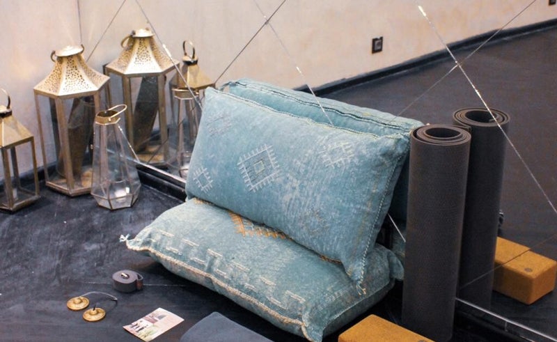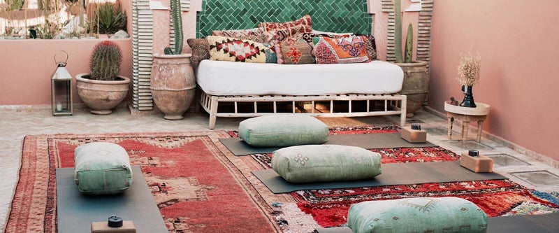 We oefenen in de in-house yogastudio - de enige in de medina - op het prachtige dakterras - en in onze woestijn yoga shala.